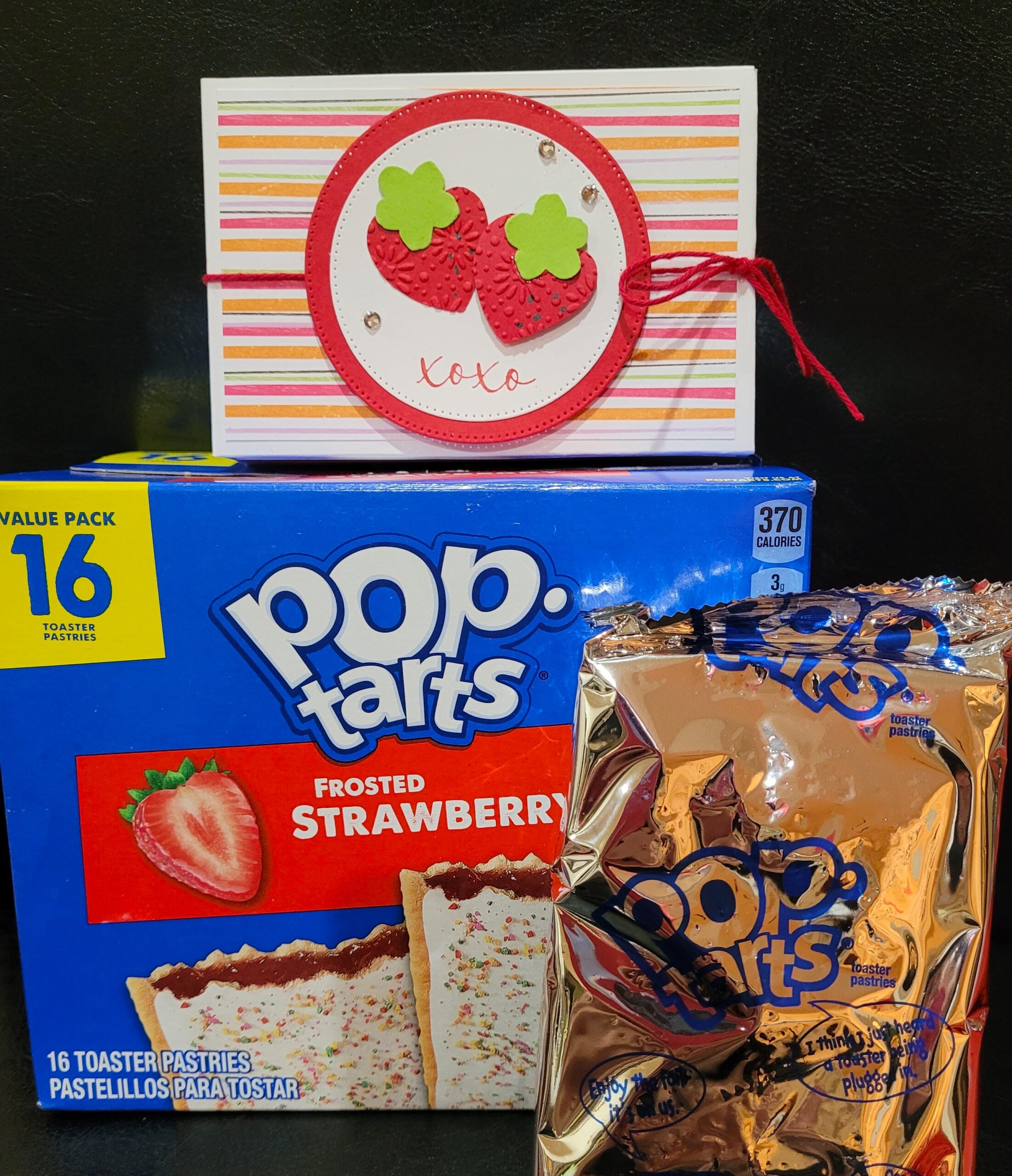 David bought two boxes of strawberry pop tarts from the store because they were on SALE😂🤣 He doesn’t even like pop tarts that much. I thought I was the only one in this house buying things because they are on sale 😁 So I created a box to hold the strawberry pop tarts as a gift for the class.